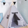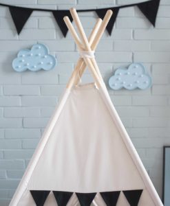 Namiot Blady Przyjaciel  charakteryzuje się jasną zasłonką nad okienkiem i czarnymi proporczykami nad wejściem.